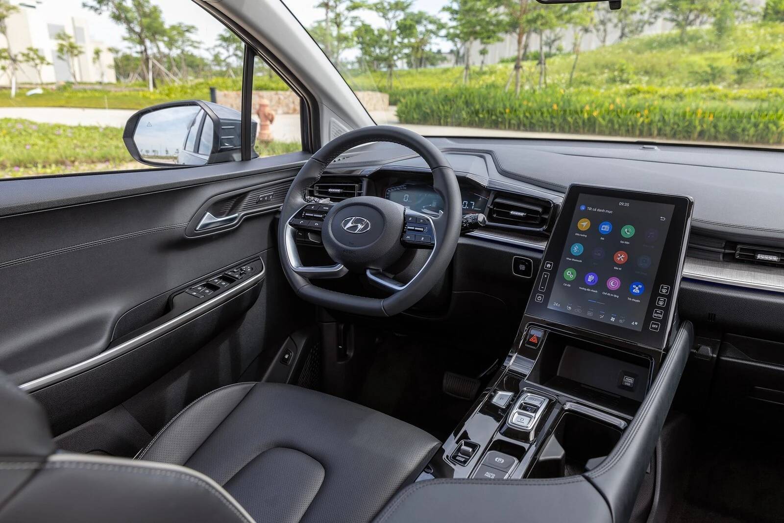 Vô-lăng được bọc da tương tự Tucson, tích hợp lẫy số. Màn hình LCD hiển thị thông tin như Accent. Nút bấm chuyển số dạng Santa Fe. Một số trang bị đáng chú ý khác có phanh đỗ điện tử, điều hòa tự động, đề nổ từ xa, đèn viền nội thất và 2 cửa sổ trời