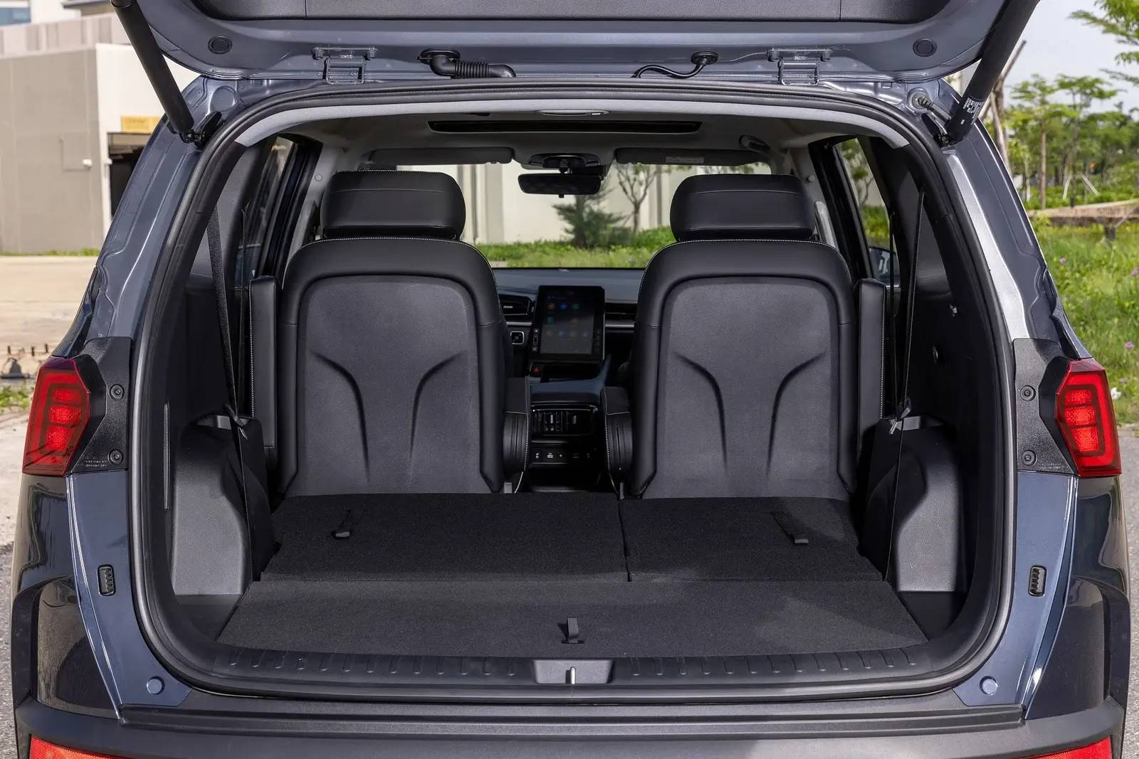 Khoang hành lý tiêu chuẩn của Hyundai Custin cũng có dung tích lên đến 261 lít. Ngoài ra, bên dưới còn có một ngăn chứa đồ tiện dụng. Khi gập phẳng hàng ghế thứ ba, dung tích khoang hành lý tăng lên đến 707 lít. Và kết hợp với gập hàng ghế thứ hai, dung tích khoang hành lý tăng lên lớn nhất với 1.223 lít.