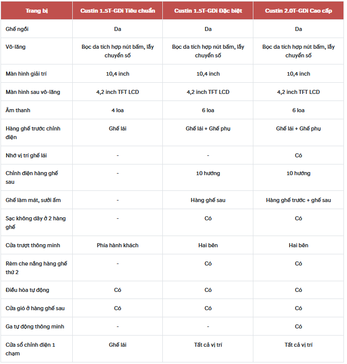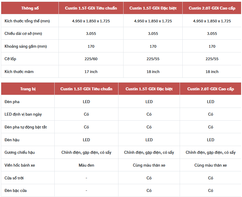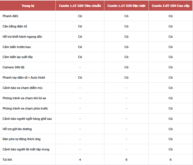 - Hyundai Custin 1.5L Tiêu Chuẩn